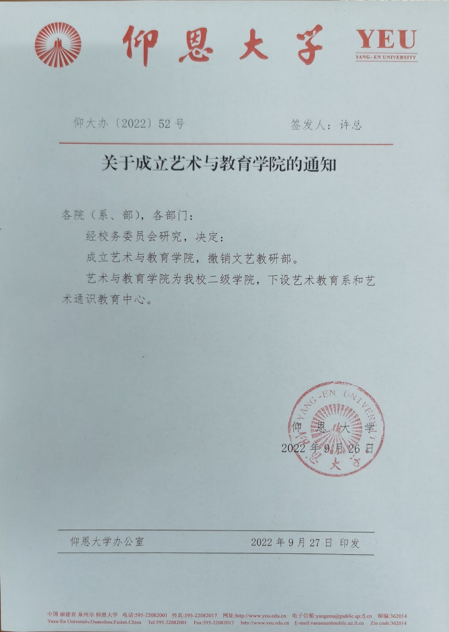 9月26日,经校务委员会研究决定: