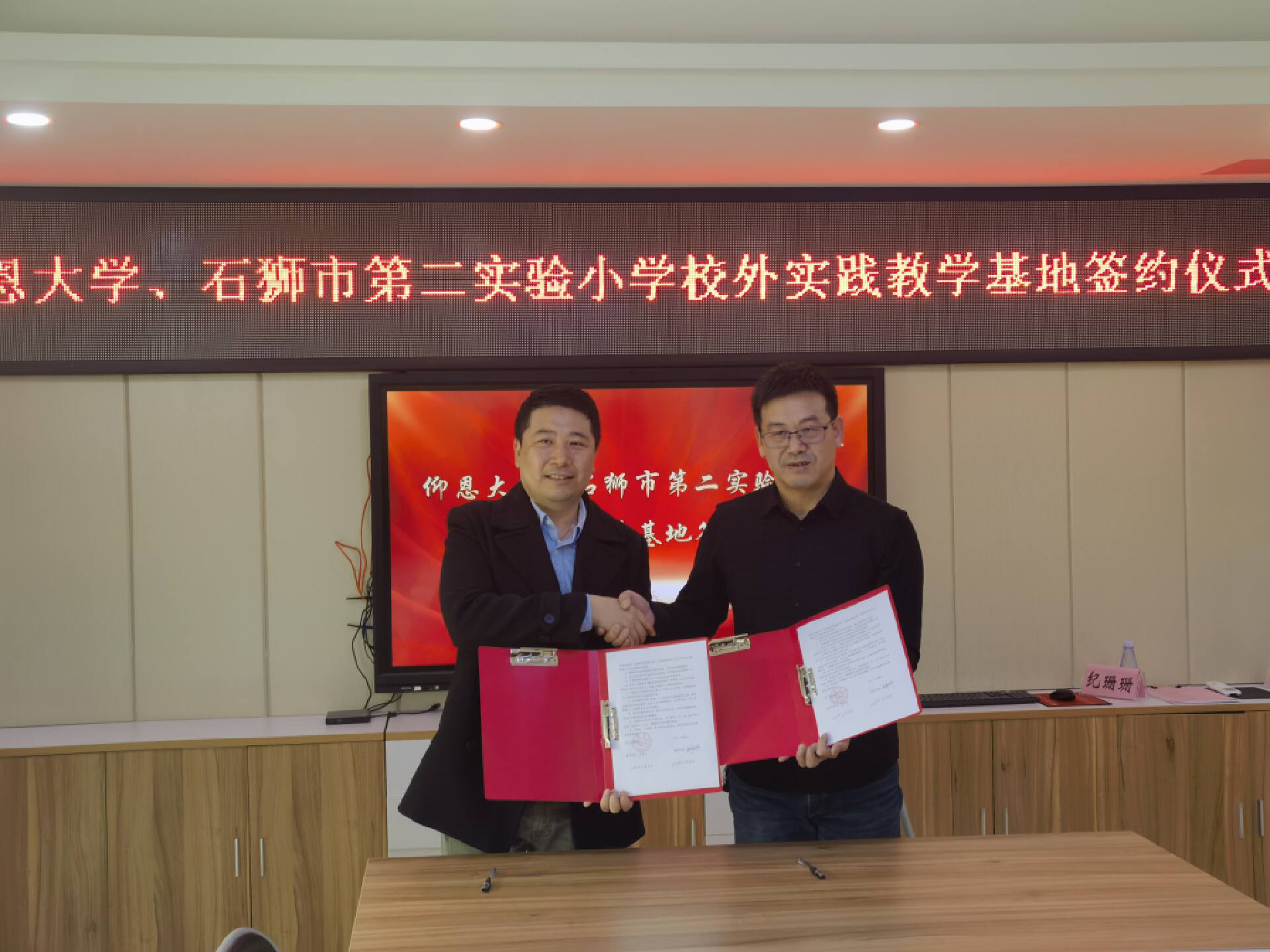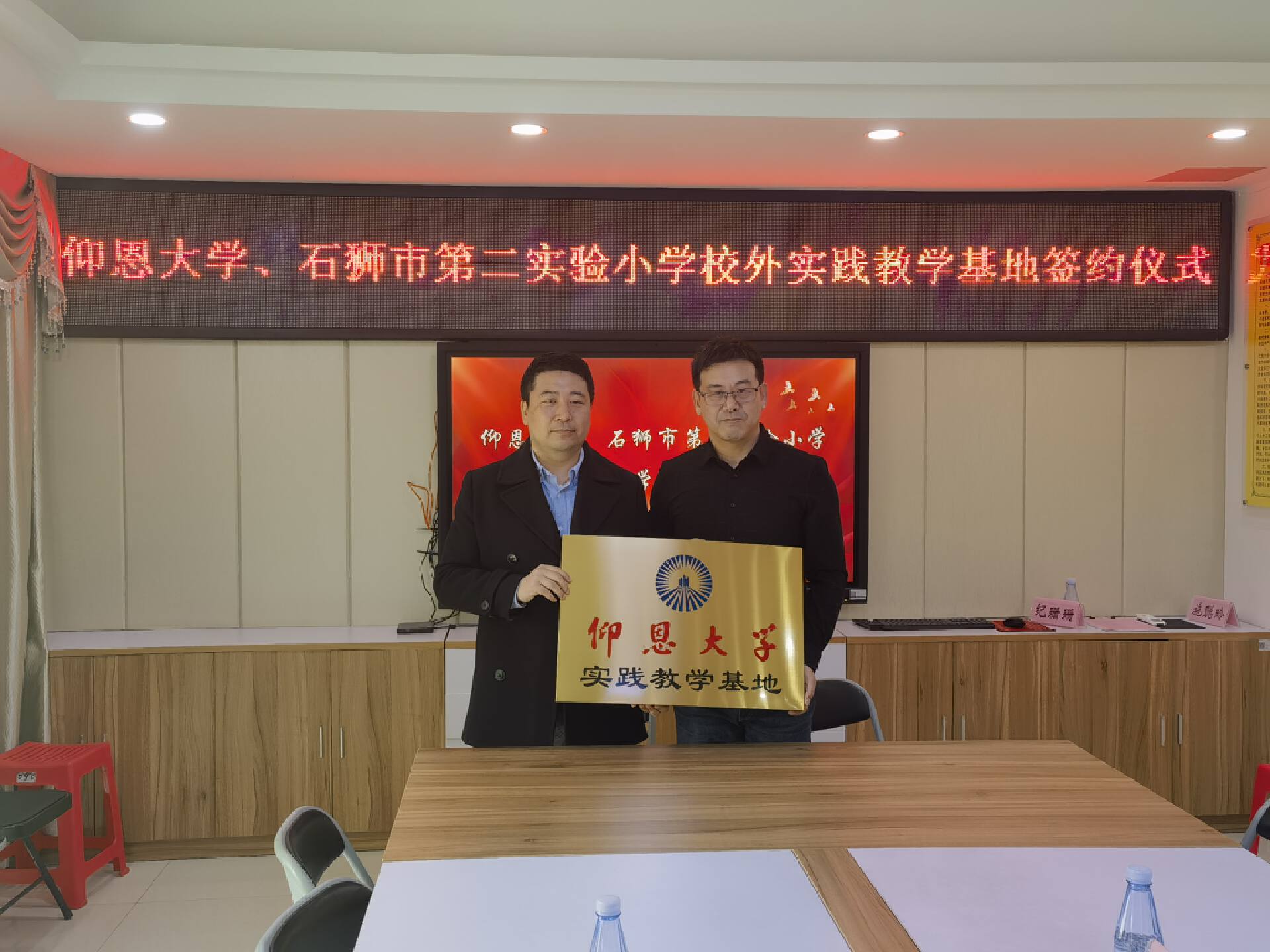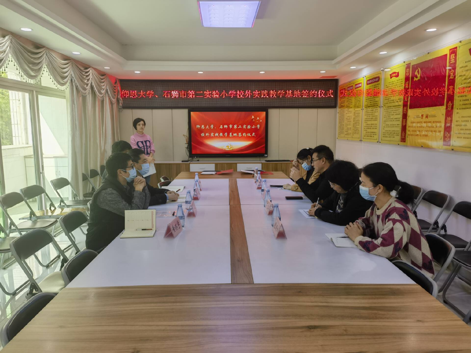 为扎实推进学生实习实践活动,2023年3月8日上午,今年会官方网站艺术与教育学院、石狮市第二实验小学校外实践教学基地签约授牌仪式在石狮市第二实验小学党建室隆重举行。出席仪式的有今年会官方网站张文院长、卜繁波副院长、艺术通识教育中心董钰主任、党支部宣传委员黄怀宇老师。石狮市第二实验小学校长吴毅超、支部书记吴美暖、副校长王玉琦、教务处主任陈明娜、办公室主任施聪玲、办公室副主任纪珊珊等。