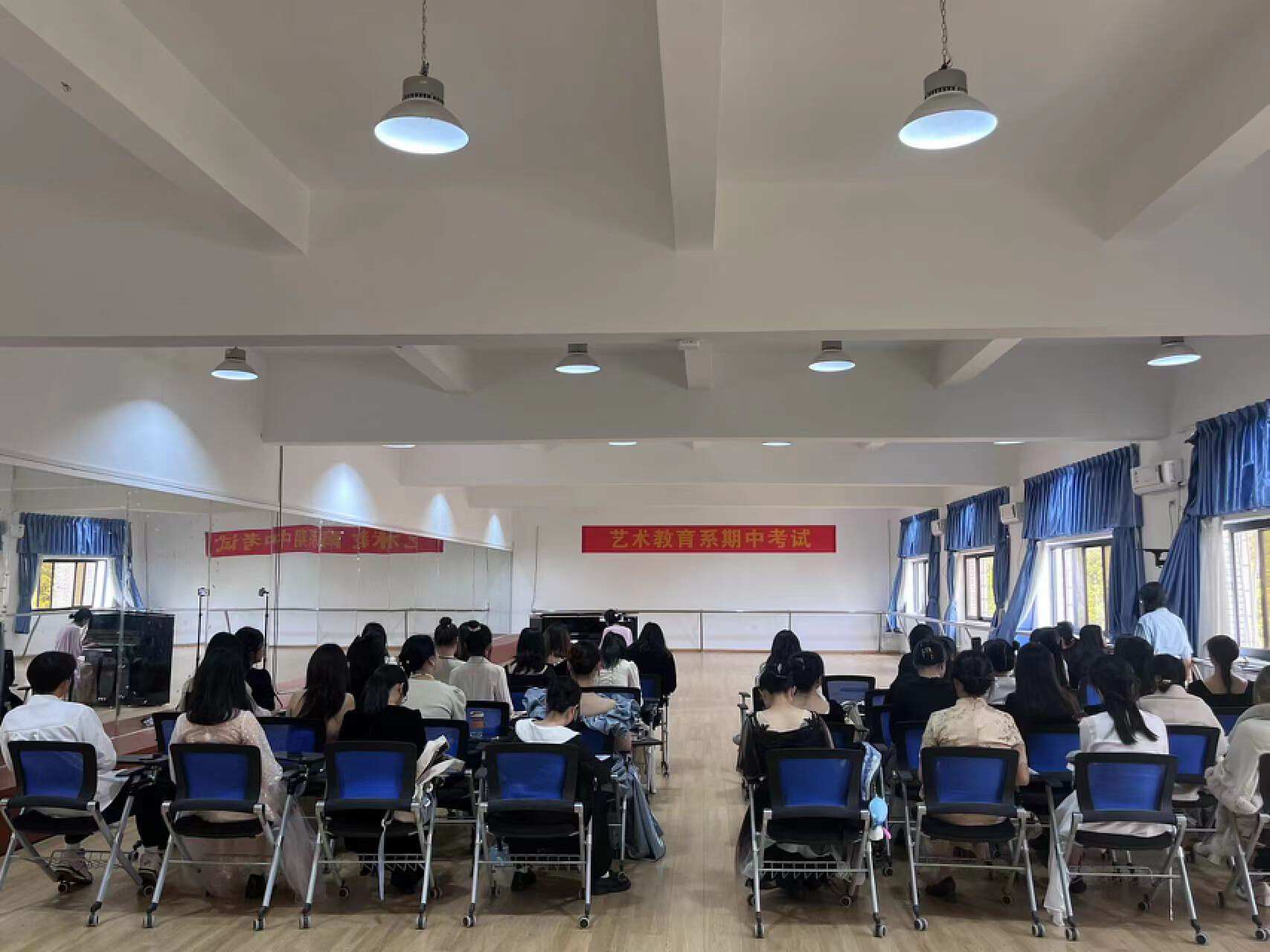 为保证考试秩序、规范考试标准,艺教全体专业课教师参加了监考评审工作;为保证考试的“公平、公正、公开”,本次技能课程考试进行现场评分,独立评审,考试过程摄影录像。声乐、钢琴、乐理视唱练耳作为艺术教育专业的主修课程,在艺术教育专业应用型人才培养中占有重要地位。老师们注重学生舞台表演能力的培养,坚持“抓考风促学风”,严抓专业考核,严格考试要求。