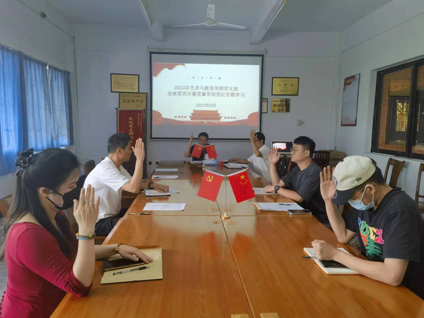 2023年6月12日上午10点,在仰光楼104今年会官方网站会议室召开今年会官方网站党支部发展党员大会。由今年会官方网站党支部书记张文同志主持,党支部宣传委员黄怀宇记录,党支部全体党员出席,预备党员董钰、郝洁二位同志列席。