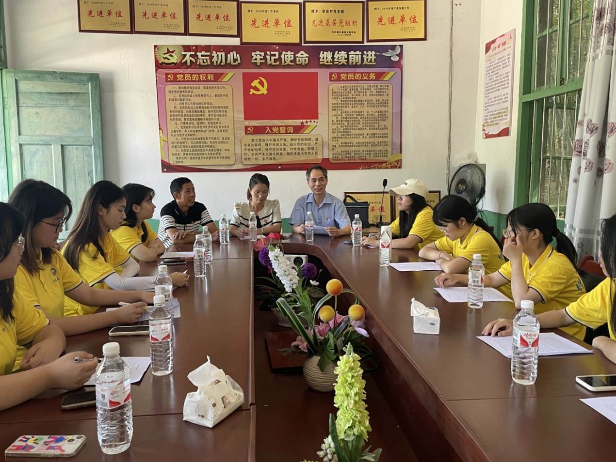 此次党课的主题是《党员的样子》,由青水畲族乡早安村第一书记陈宪全书记授课。队员们也在认真的聆听、记录。陈书记游刃有余的诠释了党员的模样,内容深刻而有趣,让队员们受益匪浅。陈书记还邀请队员们到党群服务中心就坐,并与队员们进行了亲切的会谈。队内入党积极分子积极发言,为早安村的发展建言献策。