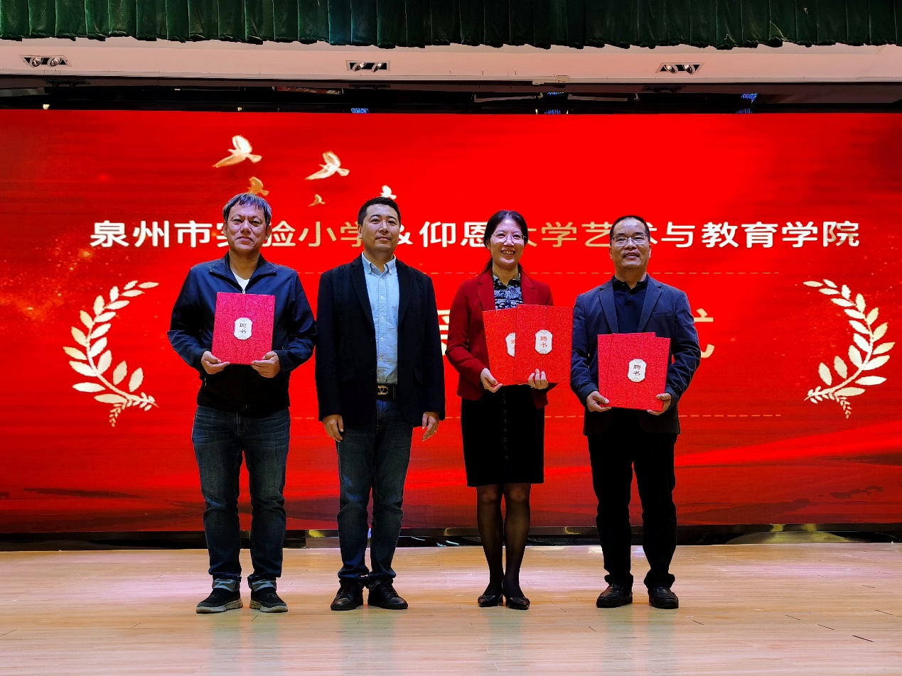 张文院长为市实小何君虹校长、倪著铭副校长、刘静波老师颁发客座教授聘书