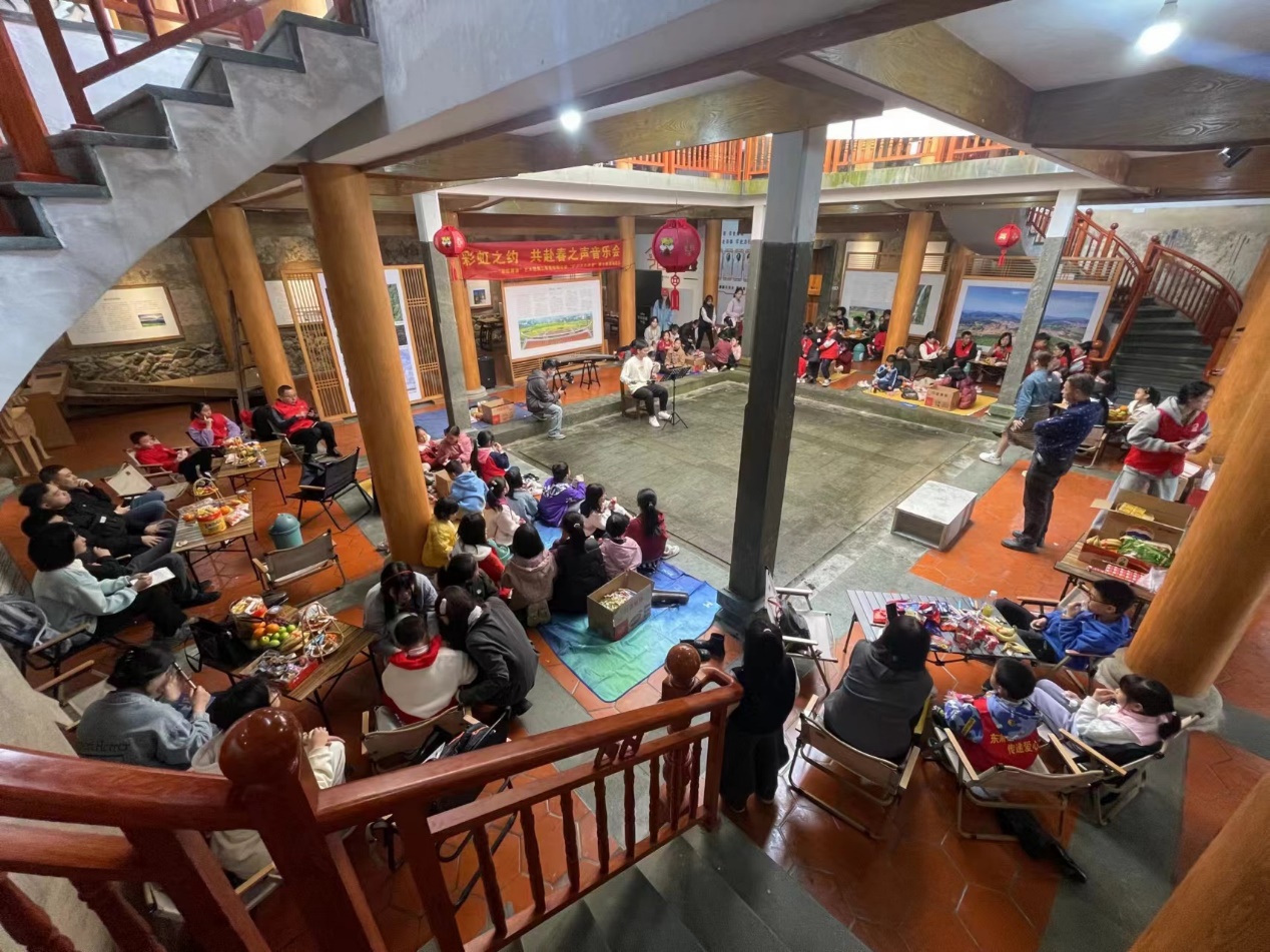 伴随着孩子们清脆的笑声,在简短的启动仪式后,春之声音乐会正式开始。今年会官方网站以积极的态度参与本次音乐会之中,携手虹山乡中心小学的小朋友们一齐演奏乐器、合唱歌曲。开场张高宇便以一曲磅礴热烈的二胡独奏《赛马》点燃现场的气氛。随后陈怡恩、林子琪更是与小朋友葫芦丝合奏《生日歌》、彭钿婷竖笛表演《新年好》、廖惠轩、吴雨柔順笛演奏《上学歌》、陈嘉雯葫芦丝独奏《月光下的凤尾竹》、廖惠轩古筝独奏《战台风》等,用旋律娓娓道来一段段支教老师和孩子们梦想的故事,真挚而热情的表演感染着现场的观众。这一刻,每一个音符、每一段旋律、每一个声音都饱含着对幸福生活的热爱与激情。
