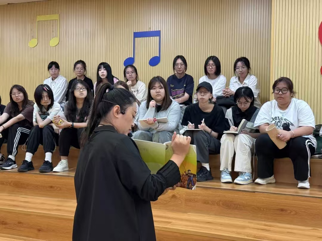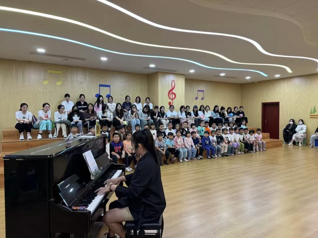 在这堂生动有趣的音乐公开课上,吴越老师通过《郊游》《在路上》和《火车来了》等曲目,引导学生感受不同节奏在音乐表达中的作用,鼓励他们模唱歌曲《郊游》,在愉快的氛围中学习音乐的基本元素。吴越老师专业的授课方式、细致的教学设计以及对低龄学生特点的把握,给观摩的艺教学生们留下了深刻印象。