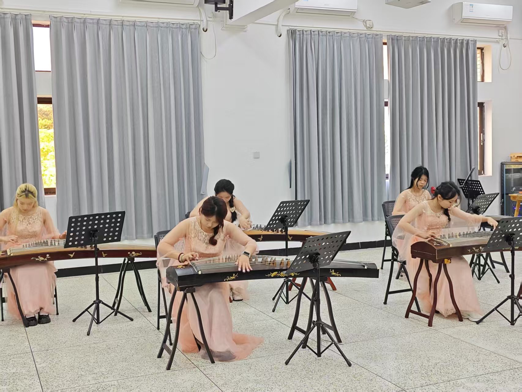 学会专家们观看民乐队同学表演