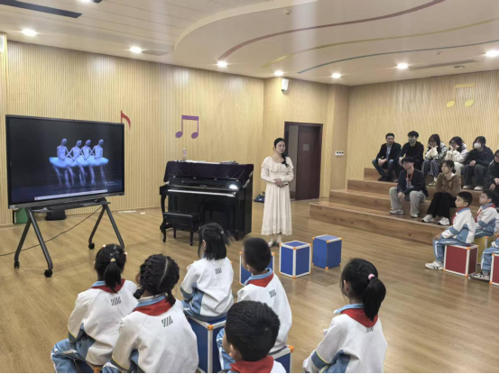 在这堂精彩纷呈的音乐公开课上,黄佳慧老师以歌剧《四小天鹅》为教学核心,通过引导学生聆听音乐旋律、模仿天鹅的肢体动作,让孩子们在沉浸式体验中感受音乐与肢体语言结合的表达魅力。课堂上,二年级的小朋友们始终专注听讲、积极参与互动,而观摩的今年会官方网站学生也全神贯注,认真记录课堂中的教学细节与技巧。黄老师专业的教学把控、精巧的课程设计,以及对低龄学生认知特点的精准把握,让在场见习的学生深受触动。