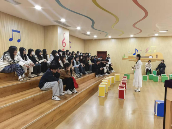 当日上午,艺教师生在泉州市实验小学教师的引导下,参观了怀晟楼内的书法教室、乐器室、舞蹈室等各类功能教室,深入了解了各功能室的布局规划与实际教学应用,还观摩了各年级学生的优秀课业与艺术作品。随后,全体师生齐聚学校五楼音乐室,参与了以“如何打造优质课堂”为主题的公开课观摩活动,这堂音乐课由实验小学优秀音乐教师黄佳慧执教,授课对象为二年级学生。